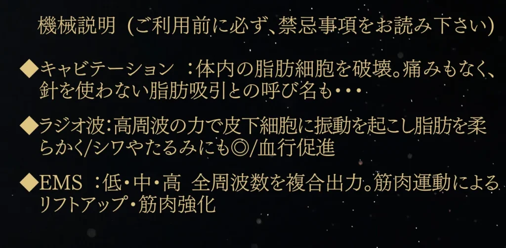 キャビテーション+ラジオ波+EMS oilトリートメント